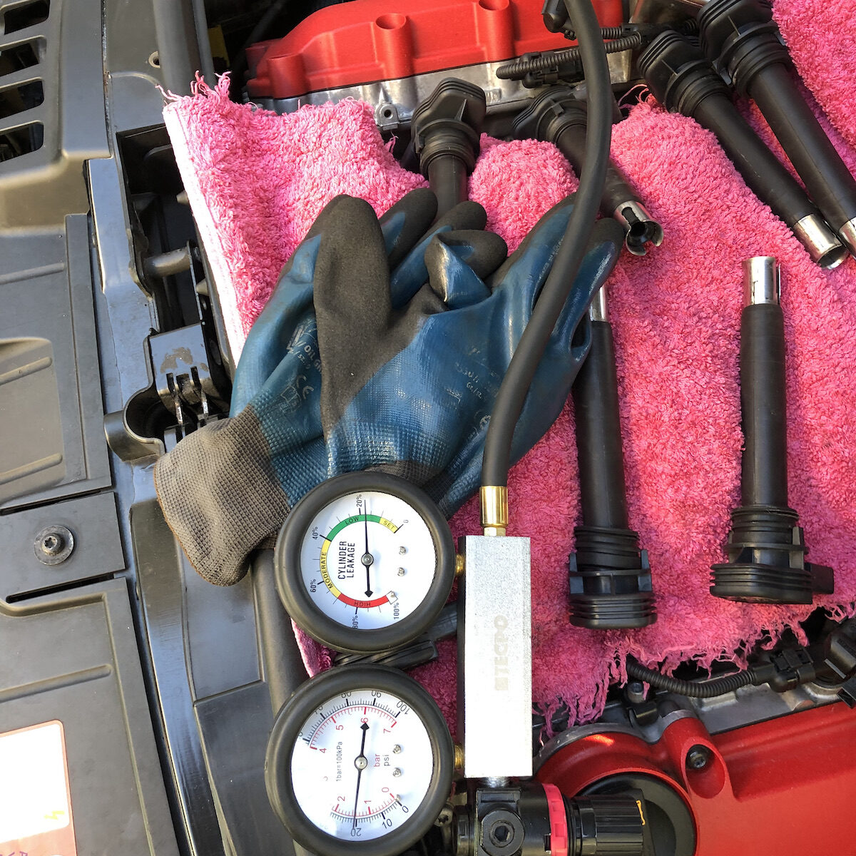 - penible Prüfung des 220.000km alten Achtzylinders (Druckverlust-Prüfung, Kompressionstest, Endoskopie, Öl-Analyse)